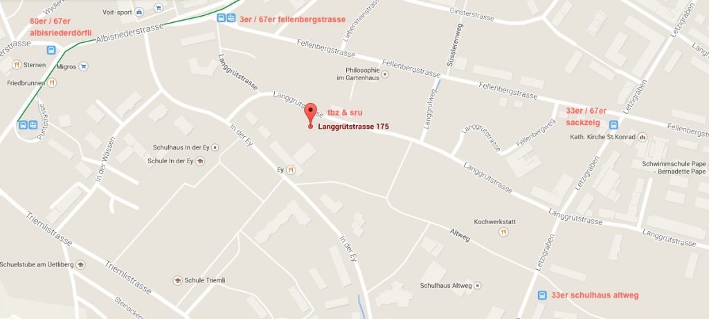 langgrütstrasse liegt quer zwischen diesen stationen