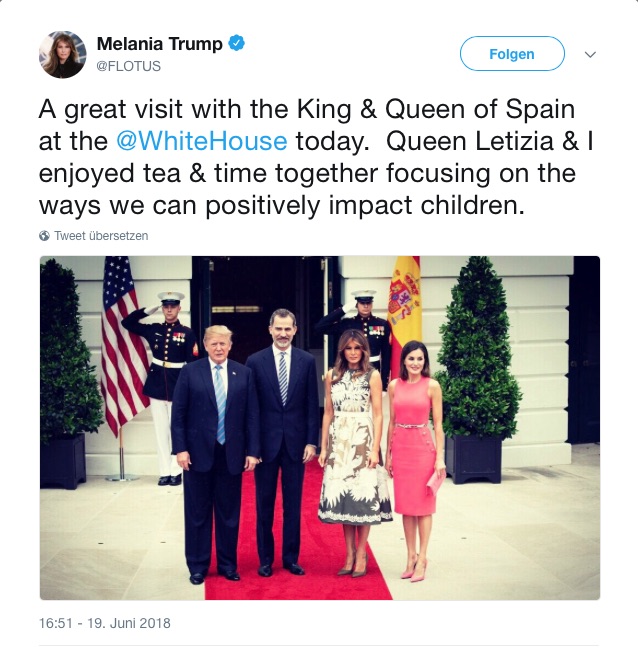 so. tbz hat ja ne kleine schwaeche fuer royals die inzwischen zu gross ist um sie geheimzuhalten aber ist ja auch eine schwaeche, und nicht ein geheimnis. und diese heutigen royal popstars bereisen ja fleissig die welt und tun allerhand wohltaetiges engagieren sich in stiftungen fuer kinder und krueppel gegen landminen und fuer schulsport und so zeug halt. und unterwegs treffen sie so auf allerhand paepste oder praesidenten und so und nun haben sich der spanische koenig und die spanische koenigin grad mit potus und flotus getroffen und, achtung, jetzt kommt's: bei einer tasse tee haben die first lady und die koenigin von spanien zusammen fokussiert "on the ways we can positively impact children". tweet angeheftet. wuerkli wahr. tbz wuerde sagen: wenn ihr die kinder nun wieder aus den zwingern holt koennt ihr direkt anfangen mit positively impacten. dummi sieche. .-.-.- morgen dann was komplett anderes: engel -- = -- -- = -- -- = -- a n a . w o r d s aus dem hellblauen salon words@ana.ch http://ana.raskinwp.ch/words/ ana.txt seite 444 reicht ana.words weiter! vragen & kommentare & texte, die ihr davon findet, sie seien es wert, dass es die ganze welt erfaehrt, oder mindestens die redaktion, dann mailto:words@ana.ch du willst auch? immer mehr? dann abonnier auch du ana.words: http://ana.raskinwp.ch/txt/444