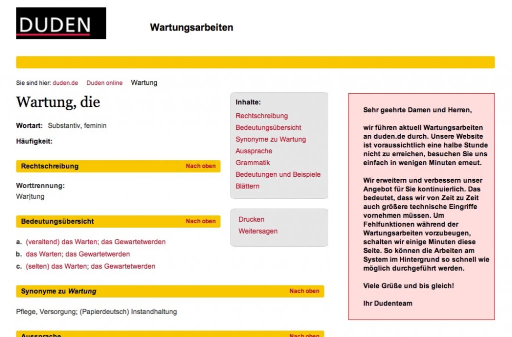 selten so ne schoene seite fuer wartungsarbeiten gesehen