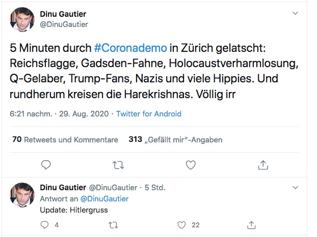 wie ist das eigentlich kann man mit nazis nicht einfach nett reden? * also so in der richtung: lieber nazi, verpiss dich doch bitte einfach. vielen lieben dank! warum verstehen die angeschrien werden so gut? also gaellit ich moechte ja einfach nicht dass dann wieder welche kommen und sagen sie haetten ja nur befehle ausgefuehrt WEIL IRGENDJEMAND IN GROSSBUCHSTABEN UND IN FETTEN BUCHSTABEN RUMSCHREIT WAS ZU TUN IST UND WELCHE FAHNEN DIE RICHTIGEN SIND (siehe bild) aber nun ja. vielleicht sind die leisen und geschniegelten die normalitaet vorspiegeln die gefaehrlicheren. und mit etwas abstand betrachtet ist es ja schon wieder absurd-komisch wie anti-demokratische faschisten gegen eine diktatur demonstrieren. hahaha. oder. und dann singen vielleicht noch ein paar bella ciao und die ganzen begrifflichkeiten purzeln in der bedeutung untereinander und skeptiker_innen und quer denken und frei denken und widerstand und weitere woerter werden einmal tuechtig durchgeschuettelt 2020 vielleicht werden sie pervertiert vielleicht erhalten sie nur eine kleine bedeutungsverschiebung vielleicht werden sie ihrer bestimmung zugefuehrt oder entsorgt (aua) oh du spannendes, gefaehrliches jahr und nein, nicht einfach im ach so nicht fernen berlin auch in der ach so schoenen schweiz (siehe schonwiedereinscreenshot) oder wie es der spiegel sagt: "Ach so, ja, Nazis sind auch da" ( http://tinyurl.com/y65ydpvv ) aber was soll das dunkle sinnieren ueber nazis grad wieder zum wochenanfang... sei nett, tebezett... (NEIN!) kommen wir also zu weiterem zeug: #freeassange ! http://www.reporter-ohne-grenzen.de/mitmachen/petitionen-protestmails/julian-assange-nicht-an-die-usa-ausliefern ihr wisst schon pro grundrechte medienfreiheit meinungs- und informationsfreiheit und so findet man im zweifelsfall bei wikipedia (http://de.wikipedia.org/wiki/Grundrechte_(Schweiz) ) guten start in die woche! eure tbz * das war eher sowas wie ne rhetorische frage. nein, mit nazis reden, aeh ja... -- = -- -- = -- -- = -- a n a . w o r d s mit bildern. von euch gescannt, gemalt, photographiert, gezeichnet. ihr malt, wir versenden. a n a . w o r d s aus dem hellblauen salon mailto:words@ana.ch http://ana.raskinwp.ch/words/ ana.txt seite 444 vragen & kommentare & texte, die ihr davon findet, sie seien es wert, dass es die ganze welt erfaehrt, oder mindestens die redaktion, dann mailto:words@ana.ch du willst auch? immer mehr? dann abonnier auch du ana.words: http://ana.raskinwp.ch/txt/444 hast du genug? immer weniger? dann bestell doch nicht ana.words ab: http://ana.raskinwp.ch/txt/444