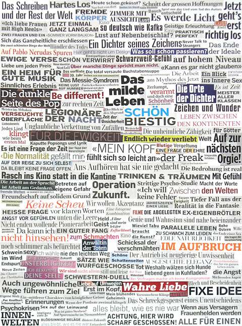 kulturgut macht schoene sachen wie zum beispiel das bild hier innenwelten genannt mehr auf http://www.tamaga.ch (bei tamelsurium wortbilder anklicken) kulturgut sucht eine galerie kulturgut weiss nicht mehr wohin mit den bildern in der wohnung die wörter müssen unters volk! saemtliche sachdienlichen hinweise bitte an words@ana.ch -- = -- -- = -- -- = -- a n a . w o r d s mit bildern. von euch gescannt, gemalt, photographiert, gezeichnet. ihr malt, wir versenden. a n a . w o r d s aus dem hellblauen salon mailto:words@ana.ch http://ana.raskinwp.ch/words/ ana.txt seite 444 vragen & kommentare & texte, die ihr davon findet, sie seien es wert, dass es die ganze welt erfaehrt, oder mindestens die redaktion, dann mailto:words@ana.ch du willst auch? immer mehr? dann abonnier auch du ana.words: http://ana.raskinwp.ch/txt/444 hast du genug? immer weniger? dann bestell doch nicht ana.words ab: http://ana.raskinwp.ch/txt/444