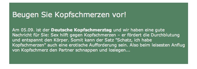 praevention es ist ja taeglich irgendein tag. also heute zum beispiel in deutschland kopfschmerztag. kann man gewerblich nutzen, wenn man…